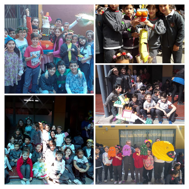 Cada alumno trajo algo en desuso; reciclado, sumado al de los compañeritos y con mucha creatividad, se transformó en "la mascota" de cada grado.